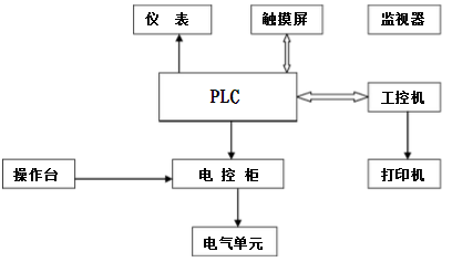 电控系统上位机部分包括工控机和彩色显示器,实现人机对话,输入生产参数;在启动时将信息传送给下位机;从下位机读取信息进行监控;故障报警;控制打印机打印数据;贮存数据。
