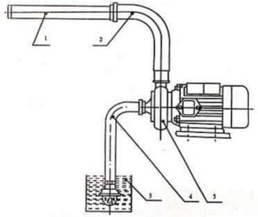 1.喷水管 2.进水管 3.水源 4.吸水管 5.水泵